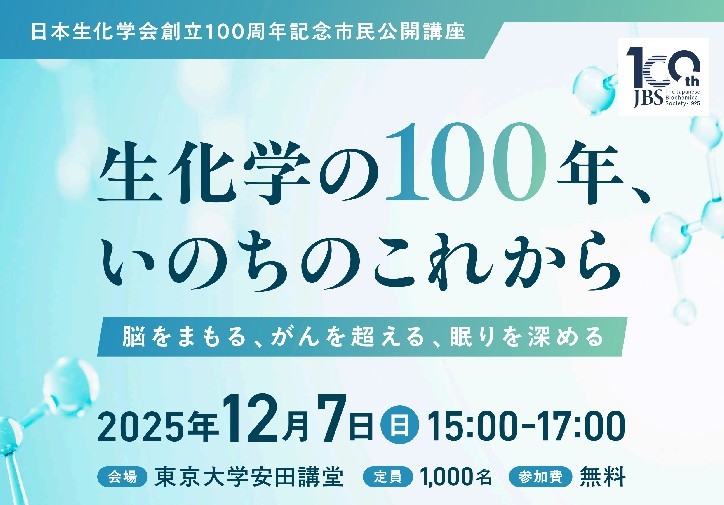 【再掲載】日本生化学会創立100周年記念市民公開講座のご案内