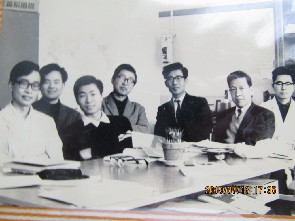 写真の左から(敬称略):深見博一、大隅良典、高崎洋三、島田一郎、前田章夫、今堀和友、篠沢孝雄。